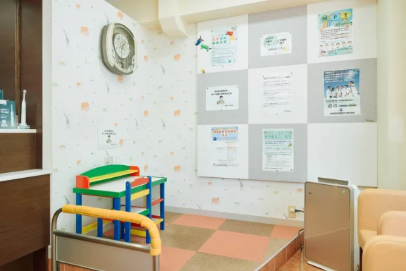 診療室に飽きたら、おもちゃのあるキッズスペースで遊んだりビデオを観たりして待っていただくことができます。安全で清潔な環境で、楽しく過ごせるスペースを用意しています。教育的な玩具や絵本も揃えていますので、待ち時間も有意義に過ごせます。