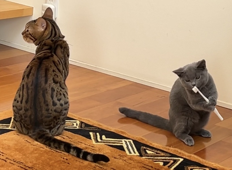 先日のクリスマスに院長の家のねこ、まーちゃんとちーちゃん(二匹合わせて まーちー)がブログデビューしましたが、そのまーちーに今年の目標を聞いたら『歯磨き🪥が上手くなること』だそうです😸…⁉️