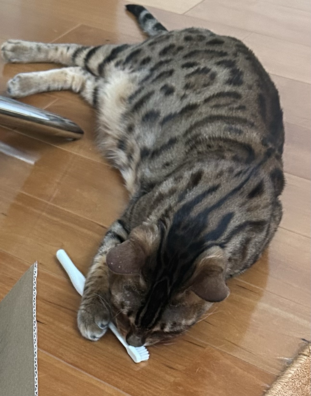 ちーちゃん、歯ブラシはにおい嗅いでなめるだけじゃなくて、ブラシを当てるんですよ😁